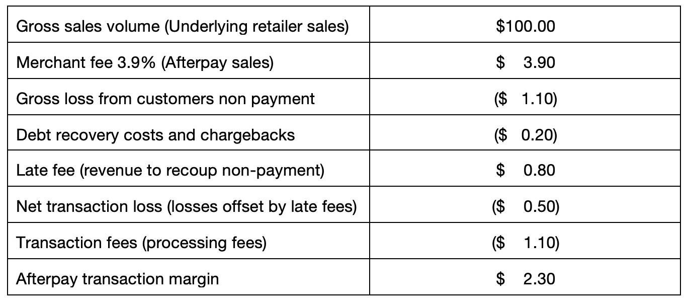 Customers are not charged if they pay on time, instead Afterpay charges the merchant an average 3.9%.