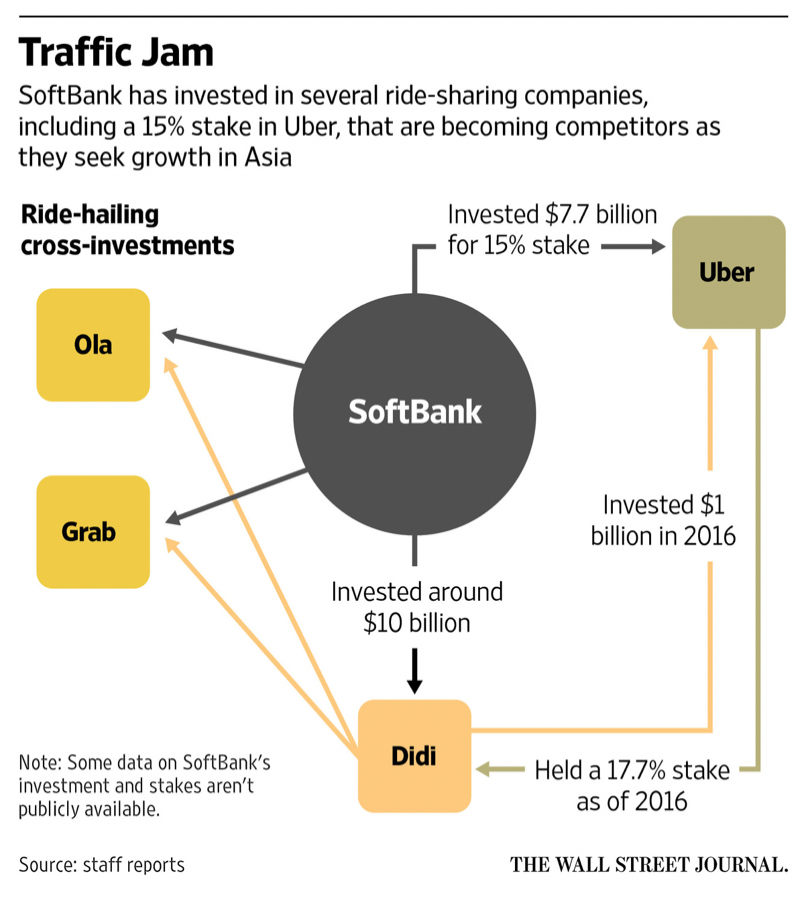 Competition brings us back to SoftBank and its investment in ride-sharing. SoftBank has kicked off a pricing war with its ride-sharing investments. The question is: will SoftBank convince the ride-sharing companies to be profitable and play nice? Incentives are wonderful and SoftBank has billions of dollars in incentives to do so. SoftBank is either the biggest or amongst the largest shareholders in regional ride-sharing leaders such as Didi, Ola, Doordash and Uber.